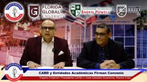 Este convenio establece una alianza estratégica entre el CARD y las siguientes instituciones educativas: Florida Global University (FGU), Universidad Tecnológica Baden Powell y American Elite School.