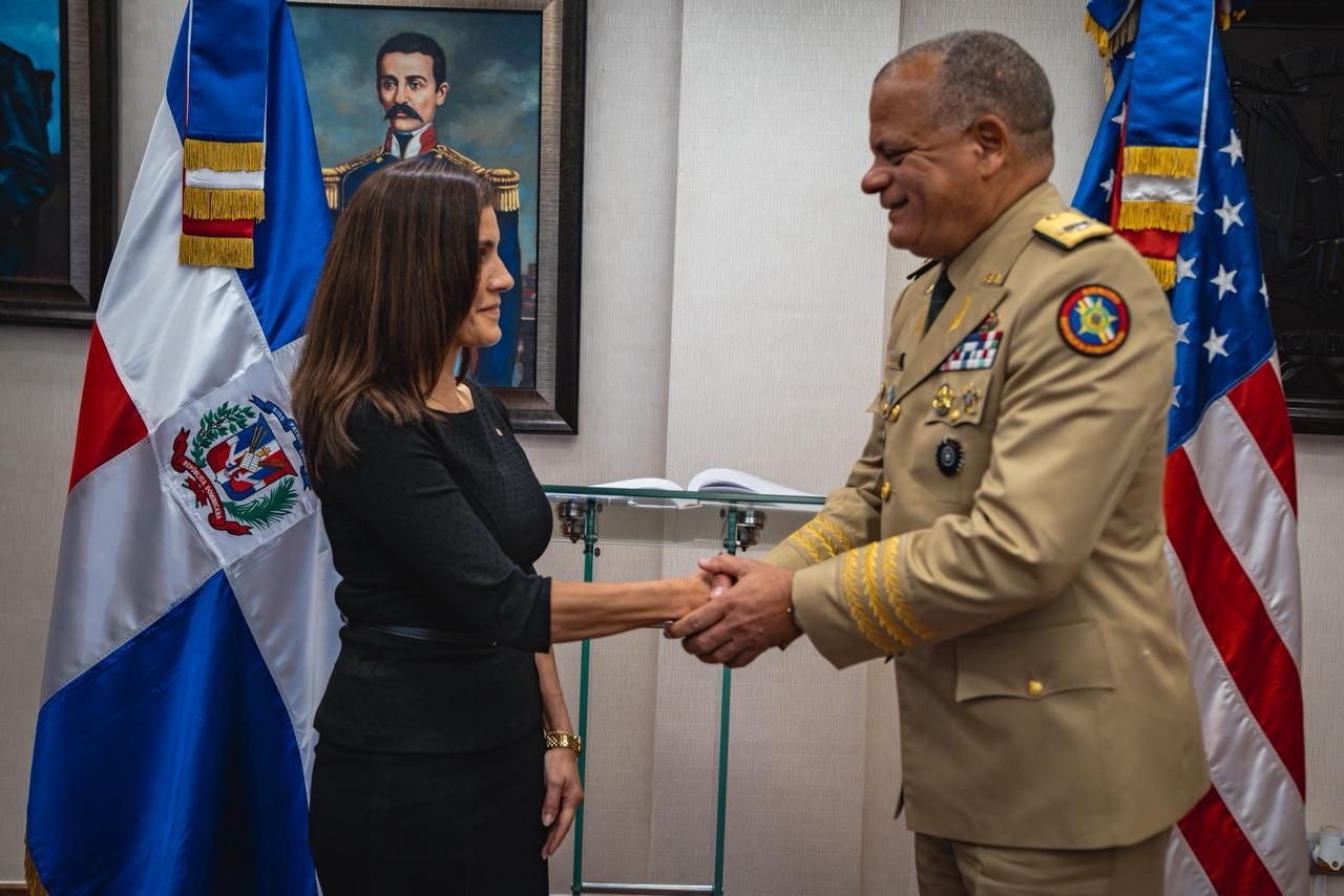 Santo Domingo.– El ministro de Defensa, teniente general Carlos Antonio Fernández Onofre, ERD., recibió en su despacho la visita oficial de la embajadora de los Estados Unidos en la República Dominicana, Leah Francis Campos, en un encuentro que reafirma los sólidos vínculos de cooperación y amistad que unen a ambas naciones.
