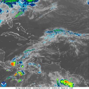 Santo Domingo, R.D., jueves 30 de abril de 2026.- El Instituto Dominicano de Meteorología (Indomet) informó que, la humedad e inestabilidad asociada a la incidencia de una vaguada en varios niveles de la troposfera, en combinación con el viento del noreste, continuará generando aguaceros en varias localidades del país este jueves.