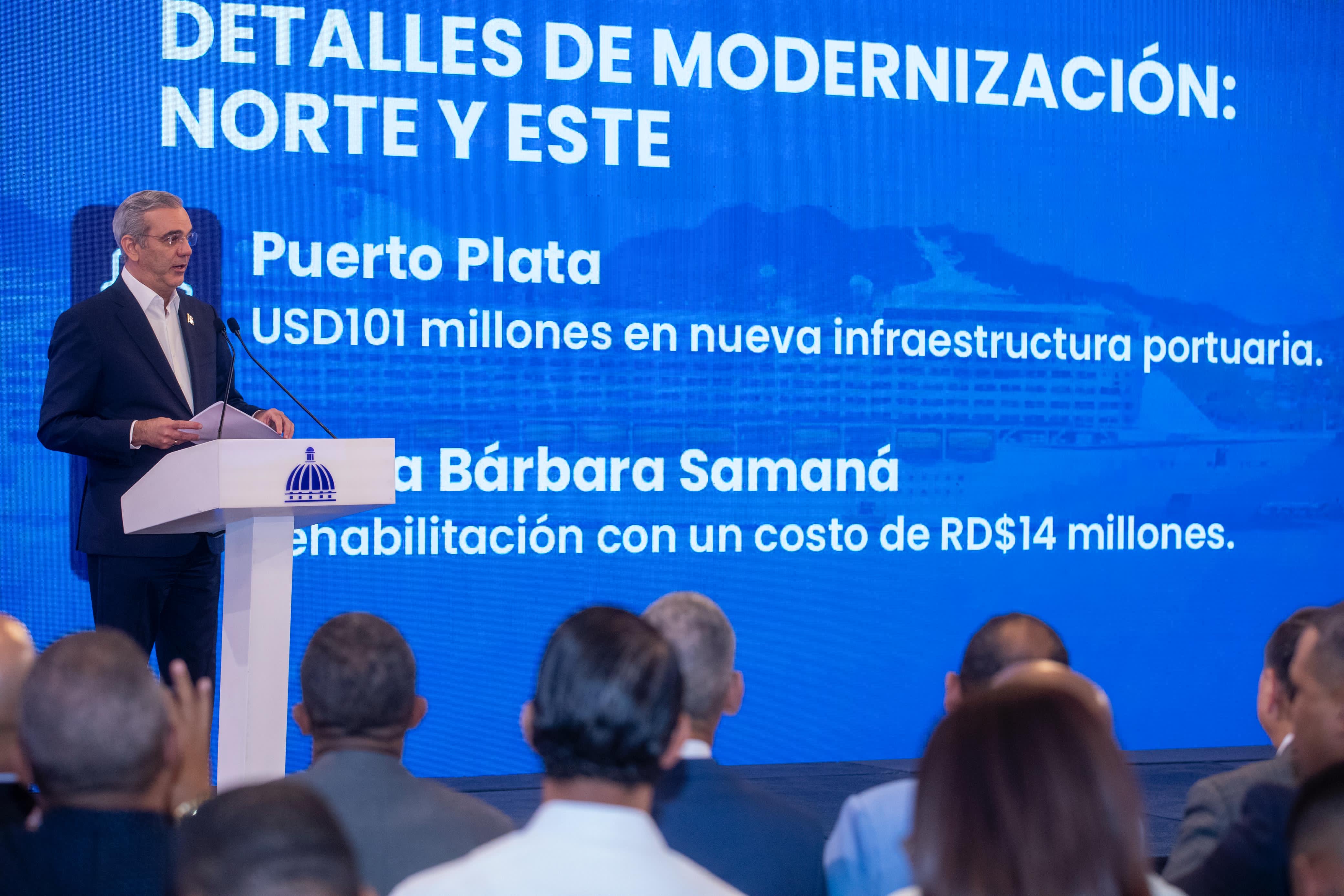 Asimismo, USD$101 millones en la nueva infraestructura portuaria de Puerto Plata y en Santa Bárbara, en Samaná, RD$14 millones en la rehabilitación.