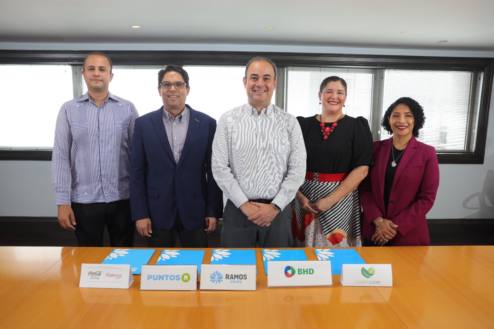 La renovación del acuerdo fue encabezada por Alicia Puello, segunda vicepresidenta de Comunicación Corporativa del Banco BHD; Iván Mejía Alberti, presidente ejecutivo de Grupo Ramos; Juan Roberto Amell, director de Asuntos Corporativos de Bepensa Dominicana; Jorge de los Santos, consultor ambiental de Tetra Pak, y Lorna Aquino Volquez, gerente de Green Love.