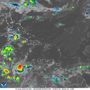 El Indomet informó, además, que mantiene un monitoreo continuo a la tormenta tropical Erin, ubicada actualmente a unos 1,105 km al oeste de las islas de Cabo Verde. Detalló que, se mueve hacia el oeste a unos 35 km/h y se espera que mantenga este movimiento, con un descenso gradual en su velocidad de traslación durante los próximos días. Sus vientos máximos sostenidos se estiman en 75 km/h, con ráfagas superiores, y se prevé un fortalecimiento gradual en los próximos días hasta convertirse en huracán.