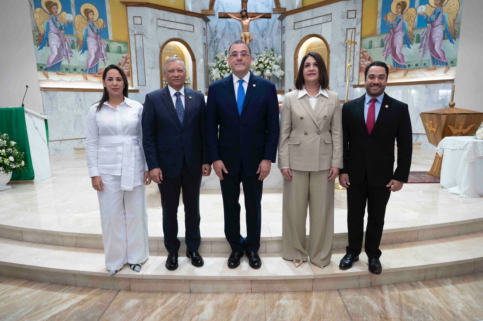 El doctor Leonardo Aguilera, presidente ejecutivo de Banreservas, estuvo acompañado en el oficio religioso por Ian Rondón, vicepresidente ejecutivo de AFI Reservas y miembros de los organismos directivos de esa entidad.