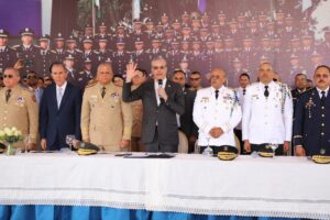 El presidente Abinader tomó el Juramento a los nuevos oficiales y encabezó el ceremonial de entrega de entrega de sables, símbolo del compromiso institucional asumido por los cadetes como oficiales policiales.