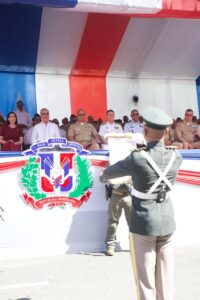 Concluido el acto protocolar, el coronel Pablo Belén Hernández, ERD, comandante de la brigada conjunta del desfile Cívico-Militar y Policial San Francisco de Macorís 2026, solicitó el permiso correspondiente para iniciar el desfile, el cual fue concedido por el presidente de la República.