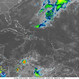 Santo Domingo, R.D., viernes 10 de abril de 2026.– El Instituto Dominicano de Meteorología (Indomet) informó que, este viernes, se producirán aguaceros localmente moderados a fuertes, acompañados de tormentas eléctricas y ráfagas de viento en distintas regiones del país, debido al acercamiento de un sistema frontal, la incidencia de una vaguada prefrontal y el flujo de viento del este/sureste.