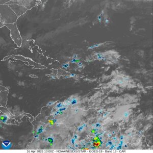 Santo Domingo, R.D., jueves 16 de abril de 2026.– El Instituto Dominicano de Meteorología (Indomet) informó que, durante el transcurso de la mañana de este jueves, una activa vaguada ubicada sobre el país, en combinación con la humedad transportada por el viento del este/sureste, comenzará a provocar incrementos nubosos significativos, acompañados de aguaceros moderados a fuertes.